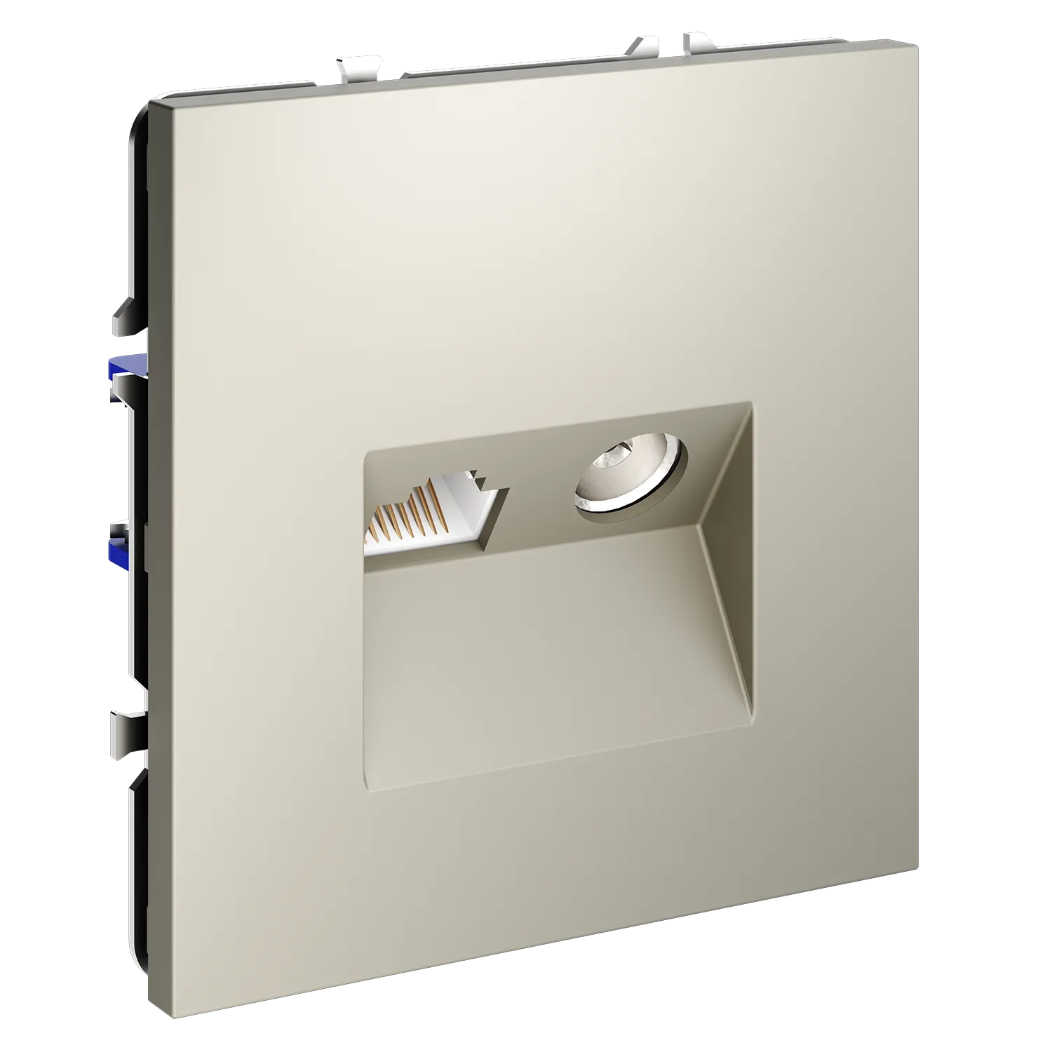 Забудьте о спутанных проводах за телевизором. Комбинированная розетка VOLTUM S70 TV+RJ45 объединяет антенну и гигабитный интернет в одной элегантной точке подключения. Чистый сигнал. Чистая стена. Полный комфорт.