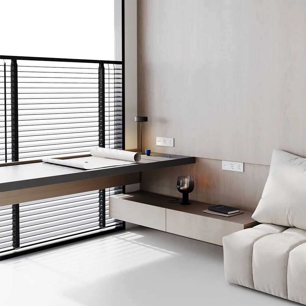 Розетка полностью совместима с пластиковыми и стеклянными рамками той же серии и гармонично вписывается в любую композицию из выключателей, диммеров и других устройств VOLTUM S70.