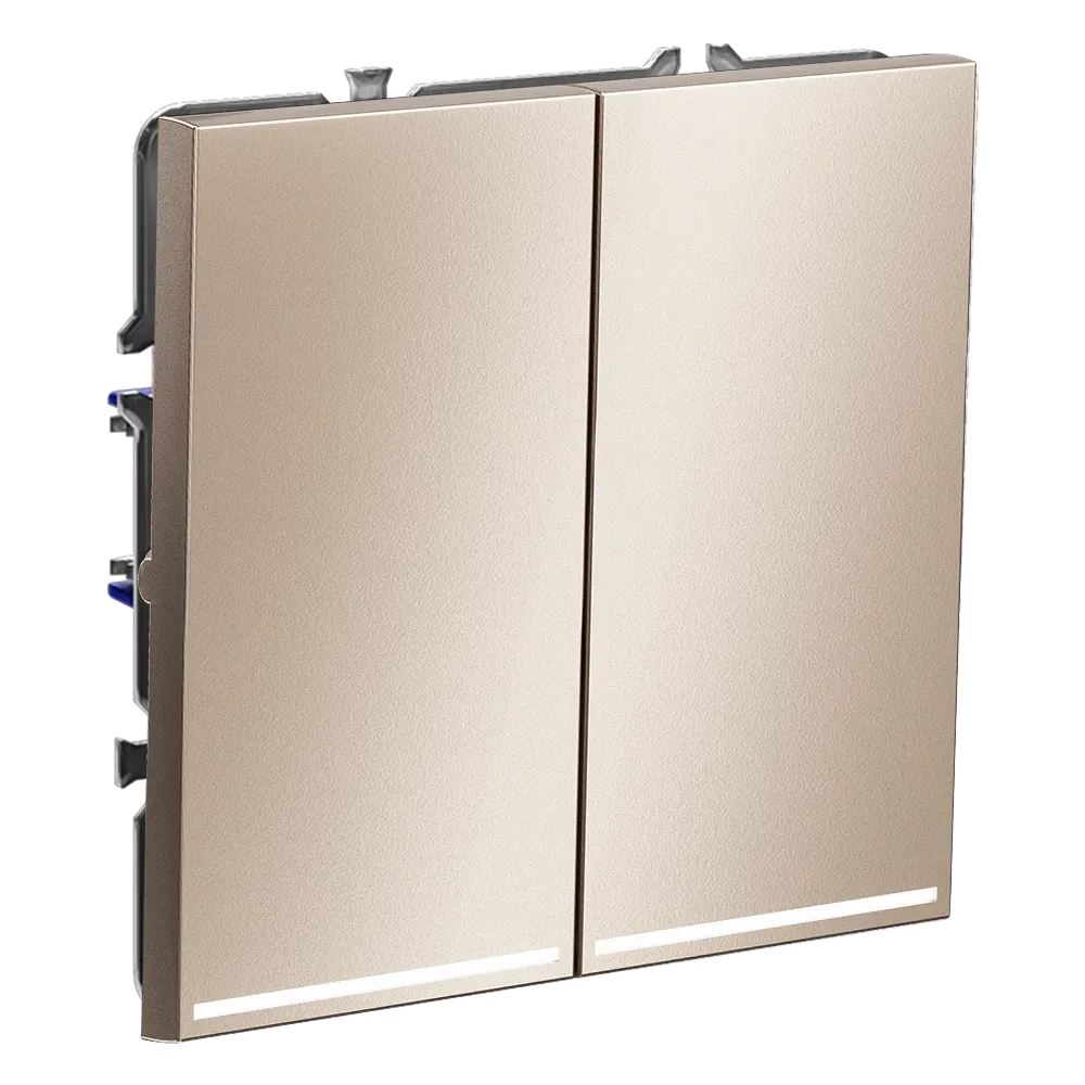 Выключатель встраиваемый VOLTUM S70 двухклавишный с подсветкой 10А (титан)